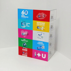 OEM UV พิมพ์หมากฝรั่งตู้อะคริลิคจอแสดงผลโมเดิร์นตู้อะคริลิคใสพร้อม Pusher